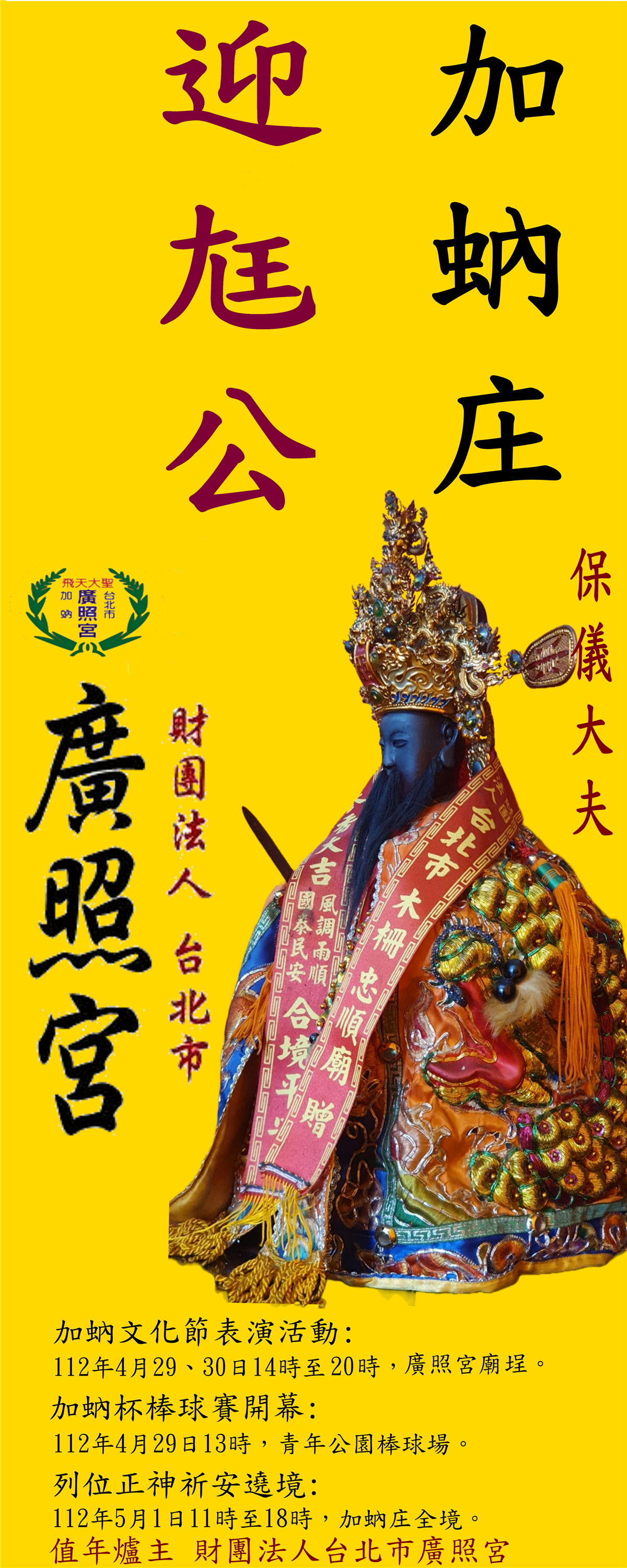 復經8大宮廟商議決定﹐ 2023(112)年首由廣照宮承辦遶境及相關事宜。 廣照宮全體同仁咸感榮譽在身﹐ 決將此項任務竭力執行﹐ 期圓滿順利完成 不負 “加蚋庄” 全民所託。 亦期望 “加蚋庄” 年例文化傳承 可長可久!